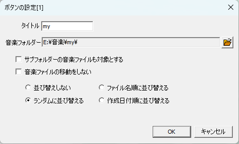 チェックすると、フォルダ下のサブフォルダ内のすべての音楽ファイルを演奏するようにします。 - 音楽ファイルの移動をしない