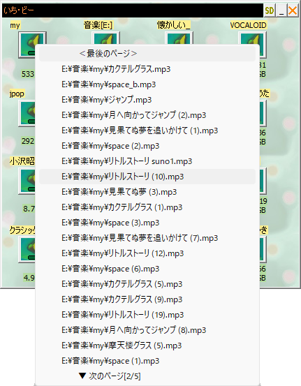 つまり、クリックが短押しで、そのフォルダ内の複数の曲を演奏リスト順にON/OFF毎に曲が変わります。