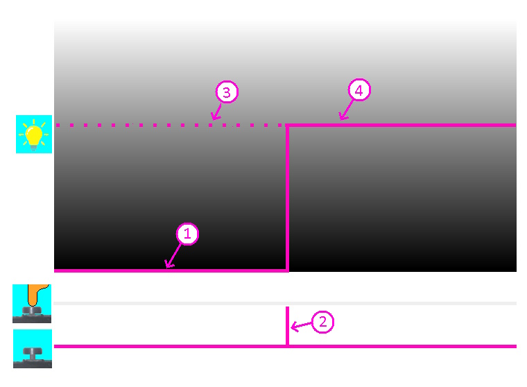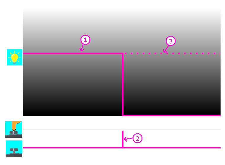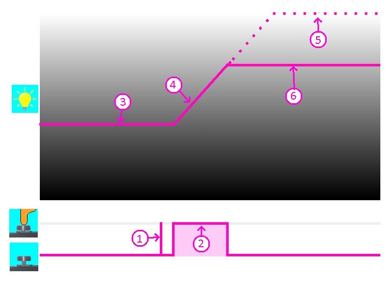 長押し②の時に、操作者が良いと感じたタイミングでボタンを離すと、変更した明るさ⑥を保持します。